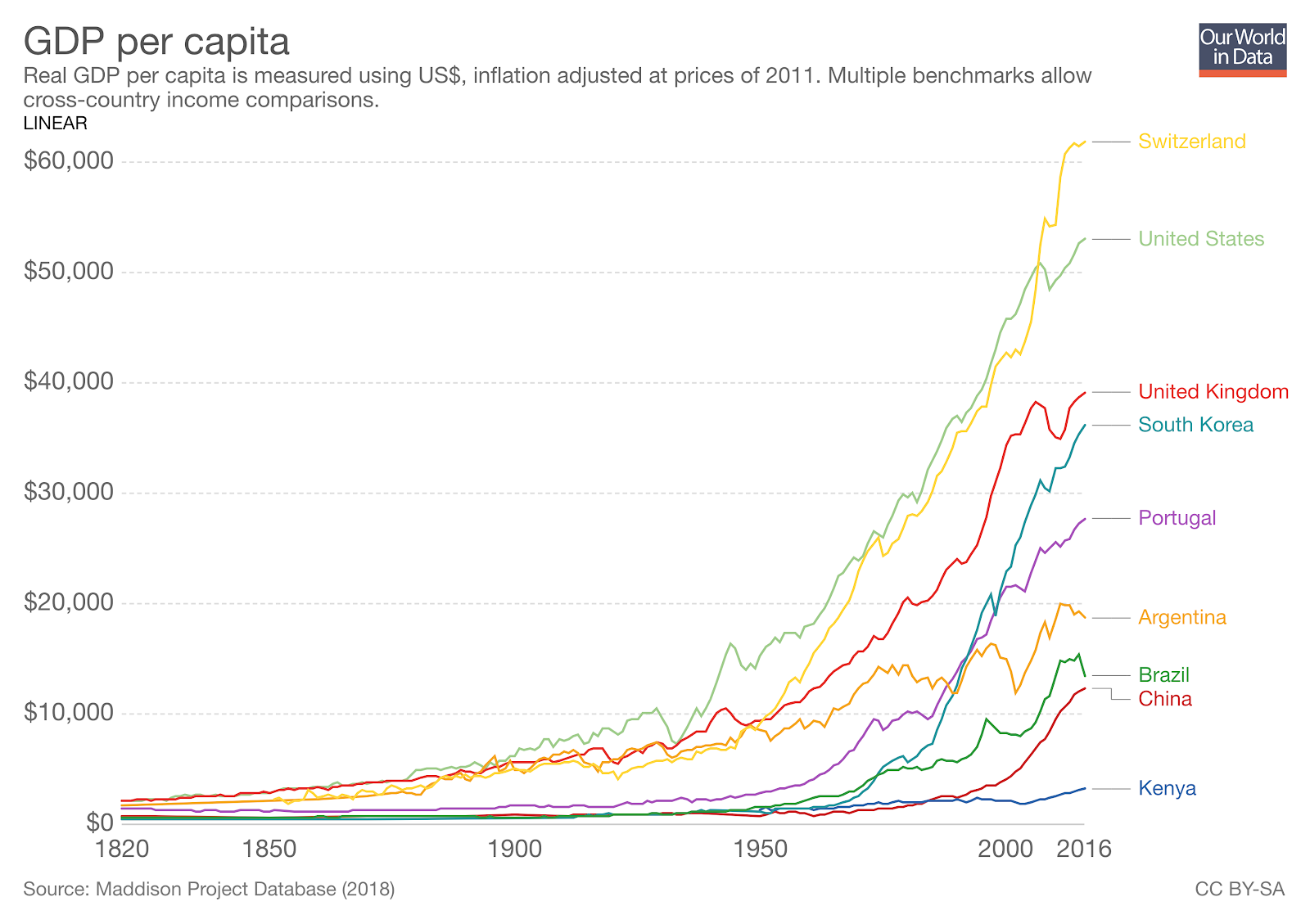 Malthus published his calls for population control just as the industrial revolution began. As figure 2 shows, the industrial revolution, driven by human innovation, led to a massive and rapid increase in wealth across the world.
