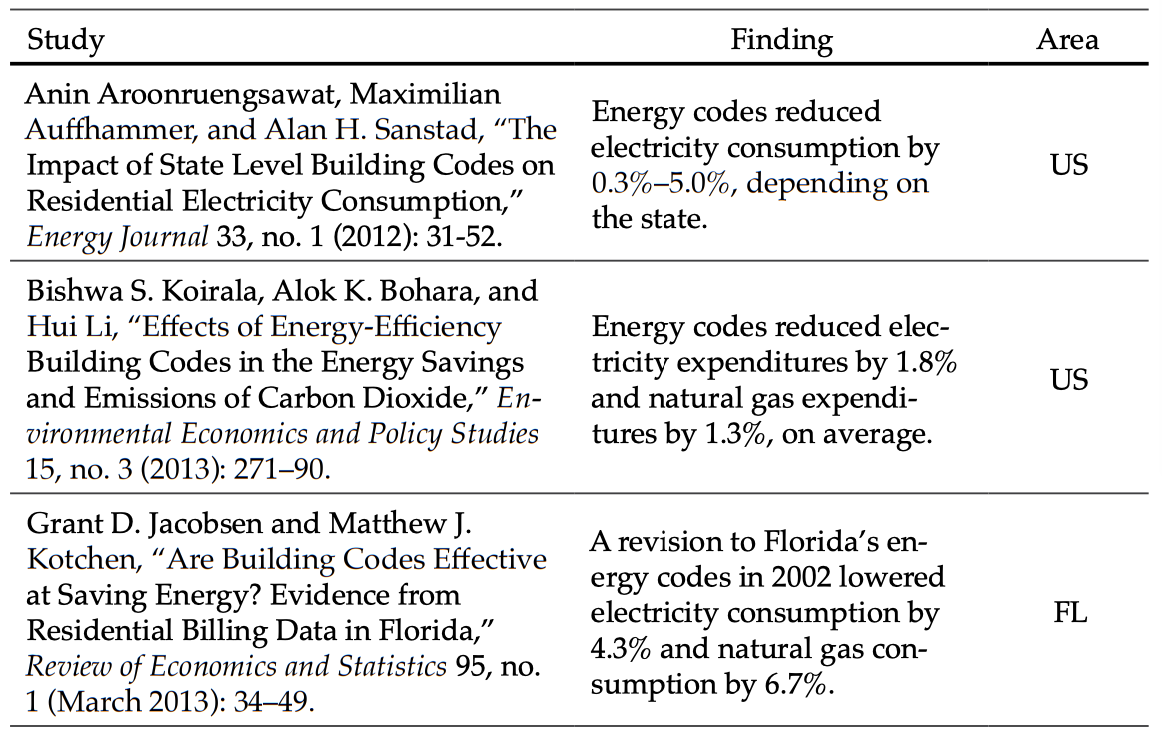 Note: These nine studies use various methods to estimate the impact of energy codes on energy use.