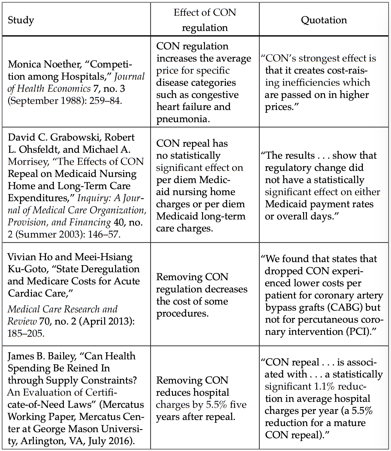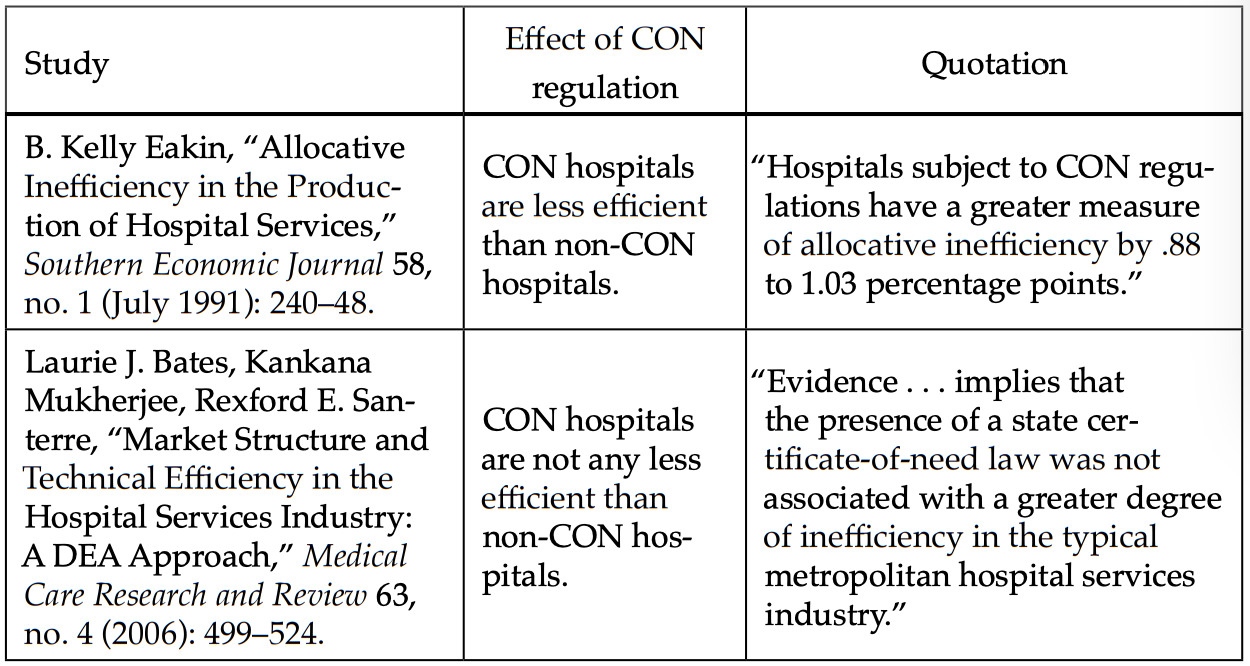 Stratmann, Thomas and David Wille. “Certificate-of-Need Laws and Hospital Quality” (Mercatus Working Paper. Mercatus Center at George Mason University. Arlington, VA. September 2016).