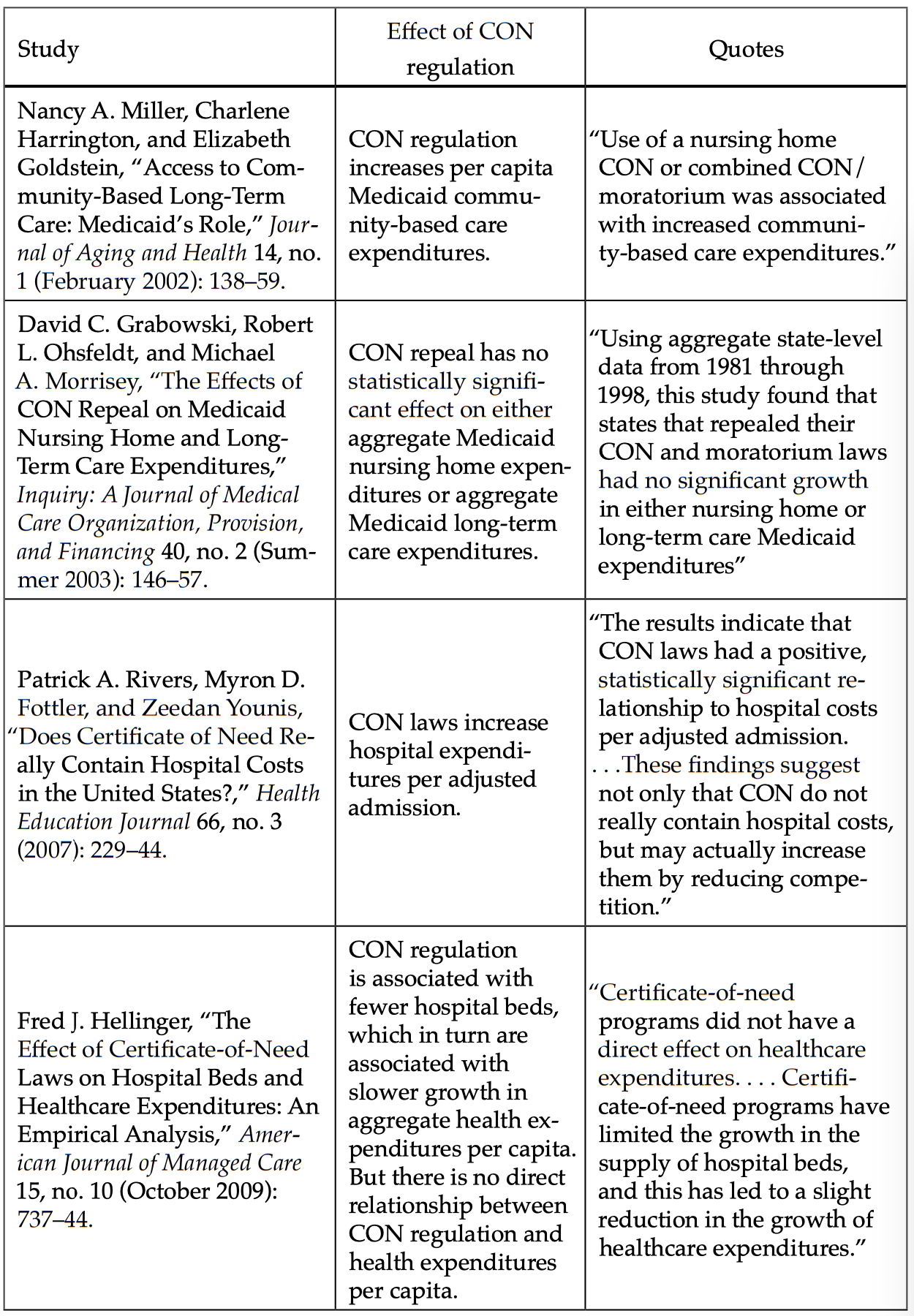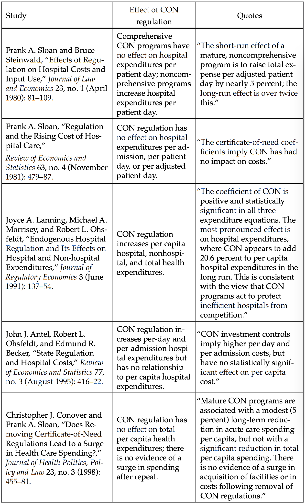 Conover, Christopher J. and Frank A. Sloan. “Does Removing Certificate-of-Need Regulations Lead to a Surge in Health Care Spending?” Journal of Health Politics, Policy, and Law. Vol 23. No.3 (June 1998).