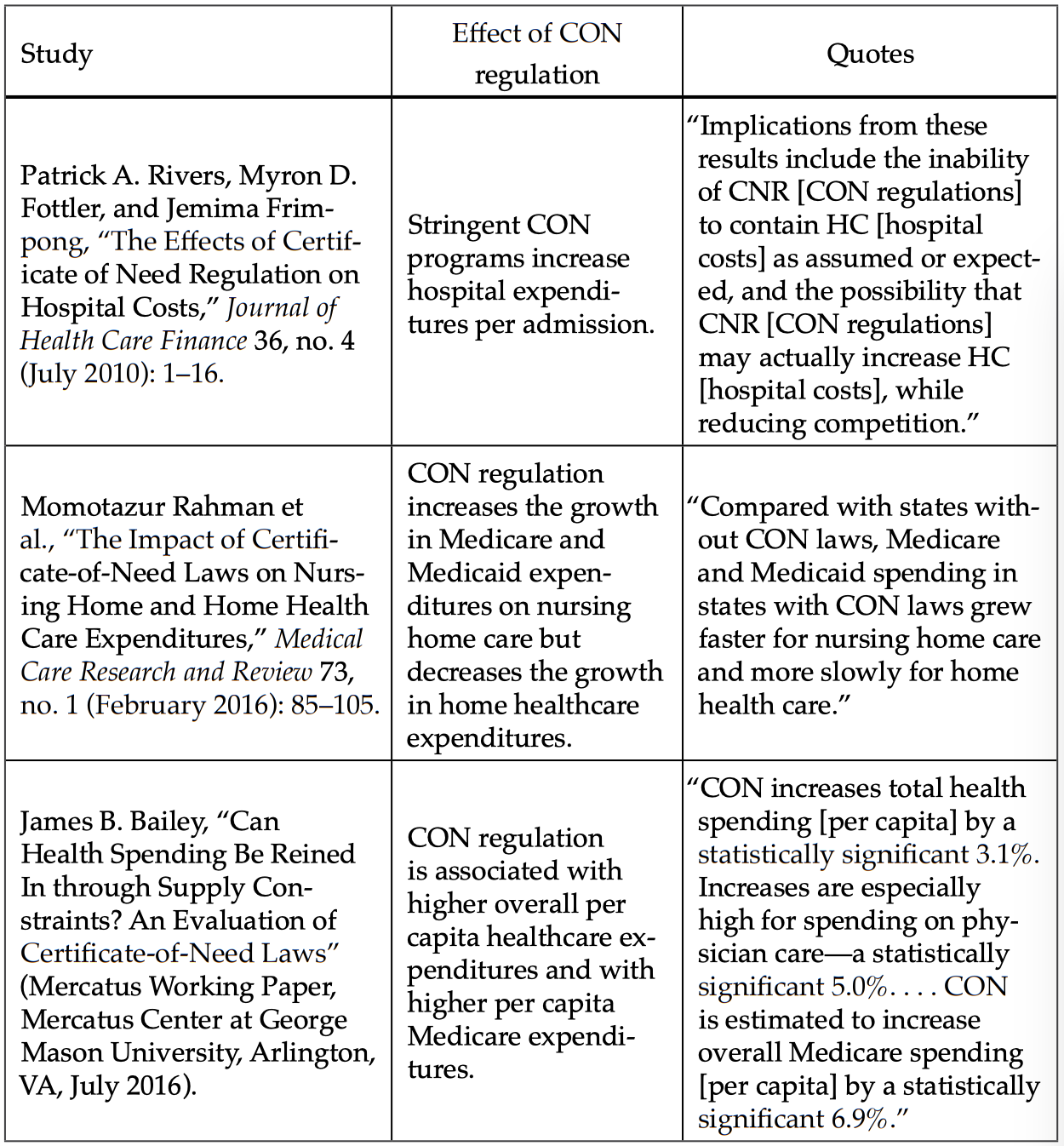 Mitchell, Matthew D. “Do Certificate-of-Need Laws Limit Spending?” (Mercatus Working Paper. Mercatus Center at George Mason University. Arlington, VA, September 2016).