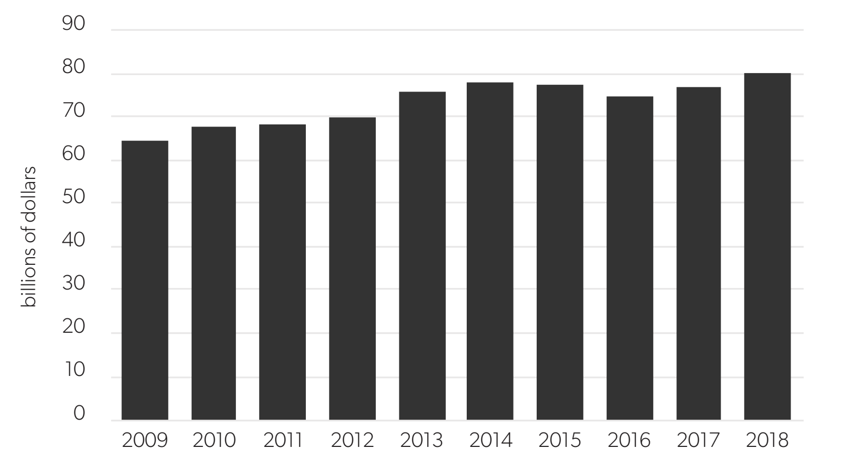 Pai was referring to the estimate by Hal Singer, a senior fellow at the Progressive Policy Institute, of a decline in domestic broadband capital expenditures of $3.6 billion in 2016, or 5.6 percent, relative to 2014 levels.32Hal Singer, “2016 Broadband Capex Survey: Tracking Investment in the Title II Era,” Hal Singer (blog), March 1, 2017. As shown in figure 2, the only two years in which US broadband investment has declined were 2015 and 2016, which were while the Open Internet order was in effect. When it became clear in 2017 that the FCC intended to undo the net neutrality regulations of the Open Internet order, capital investment in broadband internet capacity began to recover, and reached a record level in 2018 compared to recent years.
