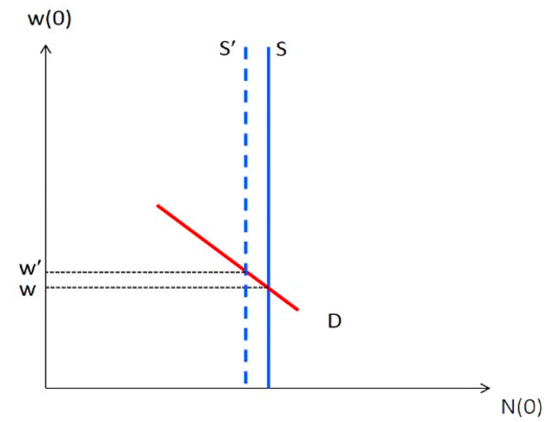 Figure 2. Response of labor market to a deportation with inelastic labor demand.
