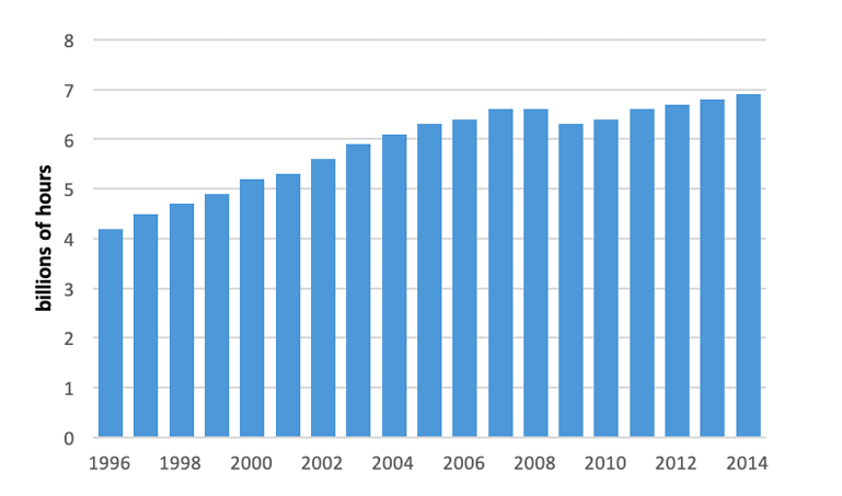 Figure 1. Total US Congestion Time Delays, 1996–2014