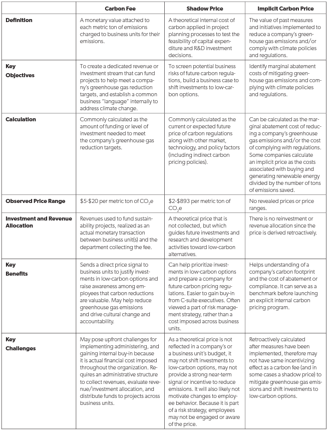 Figure 1. Methods of Internally Pricing Carbon