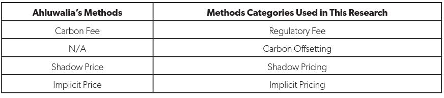 Table 2. Methods of Pricing Carbon