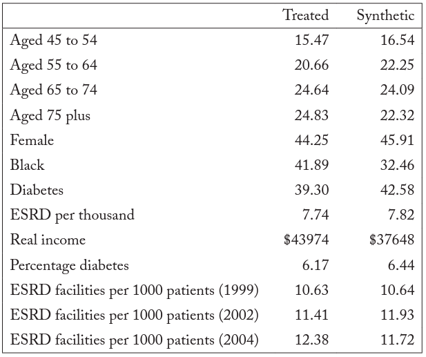 Table 6. Synthetic-control facilities predictor means