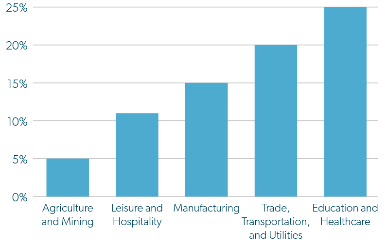 Figure 1. Percentage of Rural Jobs by Industry, 2015