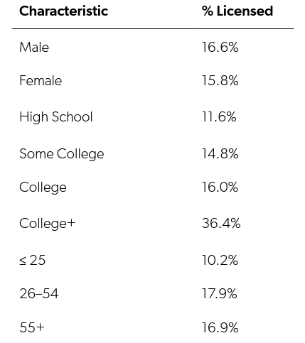 Table 1. Percent of Workers in Select Characteristics Who Are Licensed in Utah