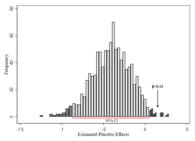 Figure 3. Distribution of placebo effects estimates (1,000 replications)