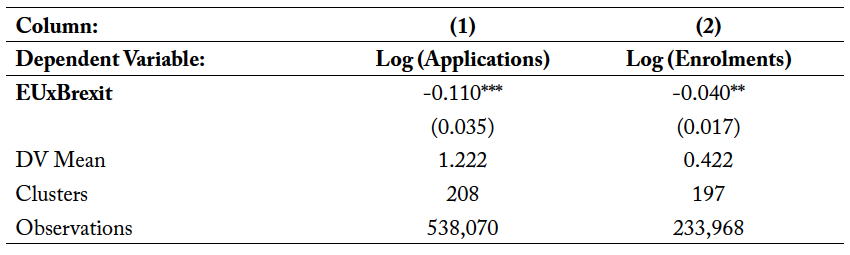 Table 6. Implications: The Impact of Brexit on EU Enrolments Conditional on Applying