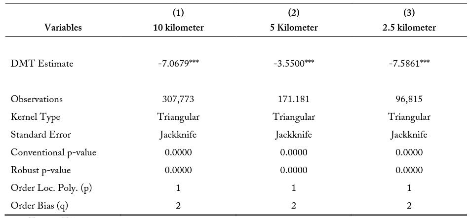 4.2.1 Geographic Regression Discontinuity Design