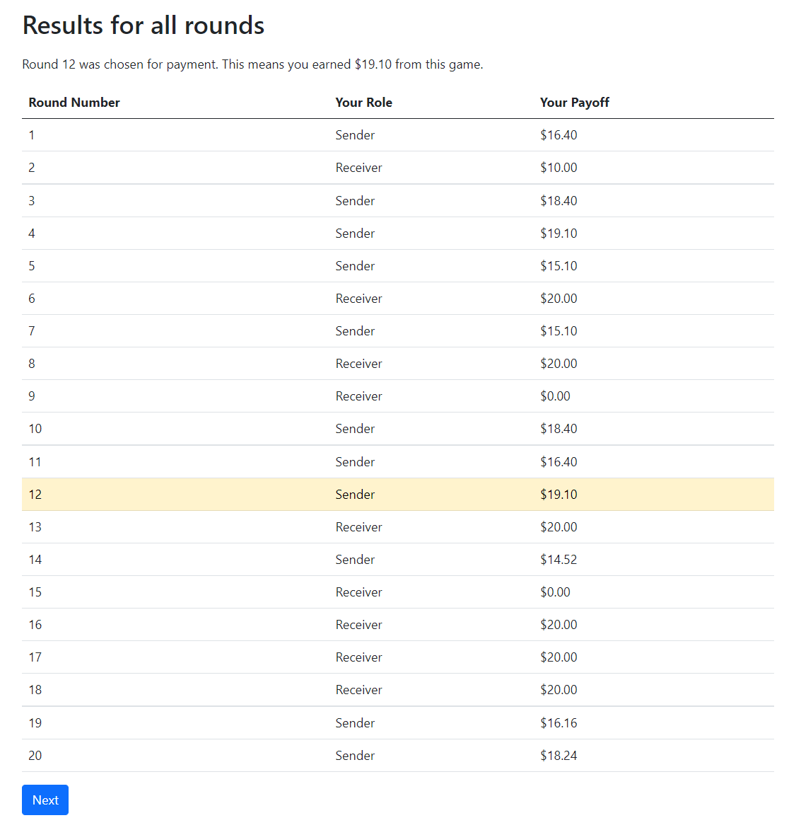 Figure 9. Screenshot of Results (Shown at the End of Each Round)
