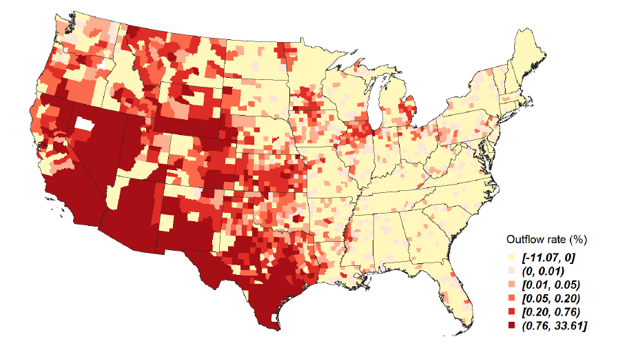 Figure 2. Geographical distribution of the inflow and outflow of Mexicans.