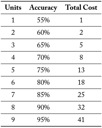 Crucially, the marginal cost of these units is increasing. Table 1 specifies the cost function of units of information as it was presented to subjects. If a subject decides not to buy information, they do not receive a signal. Each signal is conditionally independent.