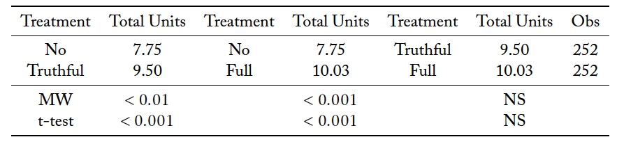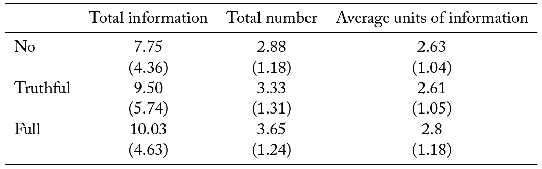 Table A2. Average units of information purchased