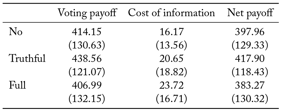 Final Payoff = Payoff from Voting – Total cost of buying information