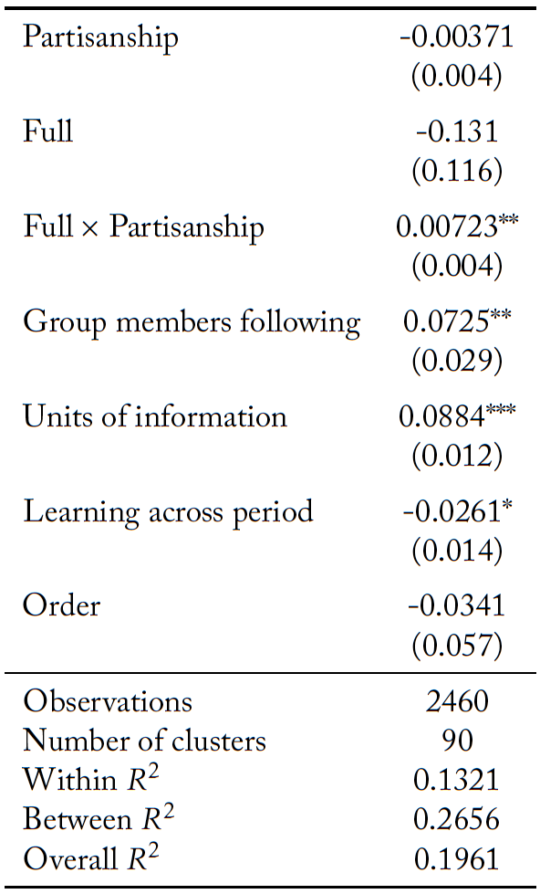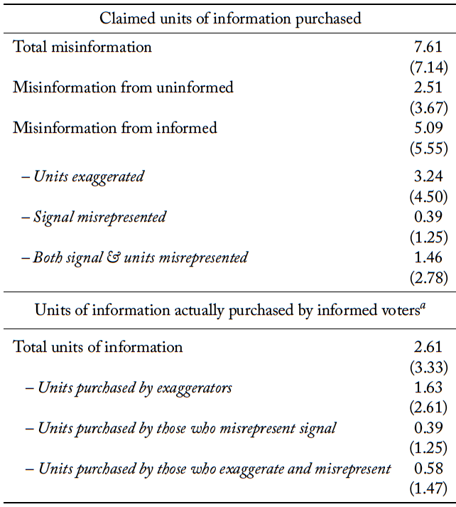 With the introduction of a social media platform, group members across the partisan spectrum purchase more units of information. Therefore, the lower quality of decision making in the presence of misinformation is not driven by voters being less individually informed. Misinformation results in voter’s expending more resources on information, but not improving the quality of decision making.