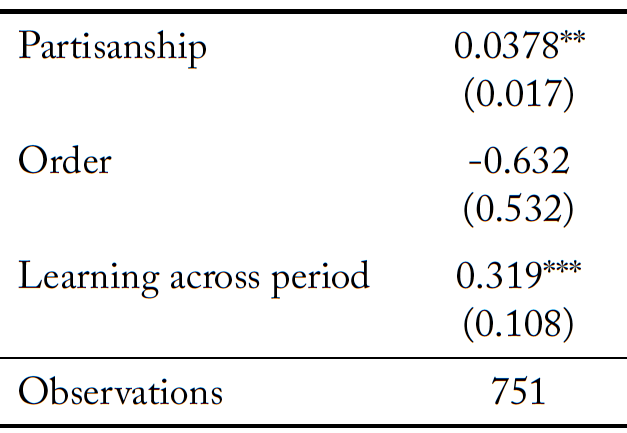 This paper contributes to two strands of the literature studying voting behavior: endogenous information acquisition and communication. To the best of our knowledge, we are the first to study costly information purchase and communication in the presence of continuous partisans within a group. So far, literature studying information acquisition decisions have considered homogeneous groups (Elbittar et al., 2016, Grosser and Seebauer, 2016, Bhattacharya et al., 2017). Goeree and Yariv (2011), Pogorelskiy and Shum (2019), Le Quement and Marcin (2019) only consider a limited number of discrete partisan types in a group. Introducing continuous partisans allows us to study how the degree of partisanship influences the quality of information shared on the social media platform. Goeree and Yariv (2011), Le Quement and Marcin (2019) report largely truthful revelation of information on the group message board. In contrast, we find that 47 percent of posts shared on the social media platform contain misinformation. We find a positive correlation between the likelihood of sharing misinformation and the degree of partisanship.