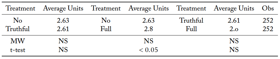 There are no statistically significant differences across the three information sharing protocols in the average units of information purchased by a group member (Mann–Whitney, n.s.).