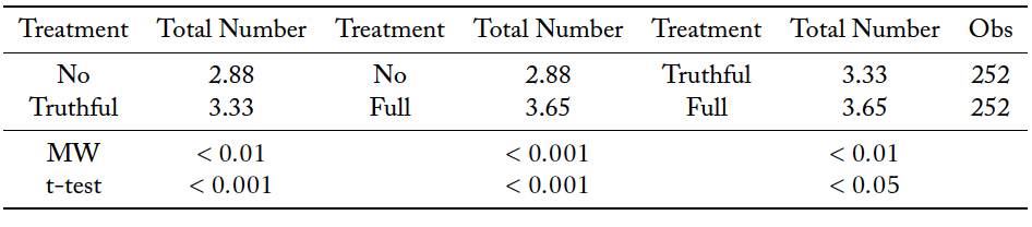 Table 3 shows that the total units of information purchased within a group increase when social media is present. This is true both when misinformation is permissible (Mann–Whitney, p < 0.001), and when it is not (Mann–Whitney, p < 0.001). Interestingly, misinformation does not increase information acquisition when social media is present (Mann–Whitney, n.s.).
