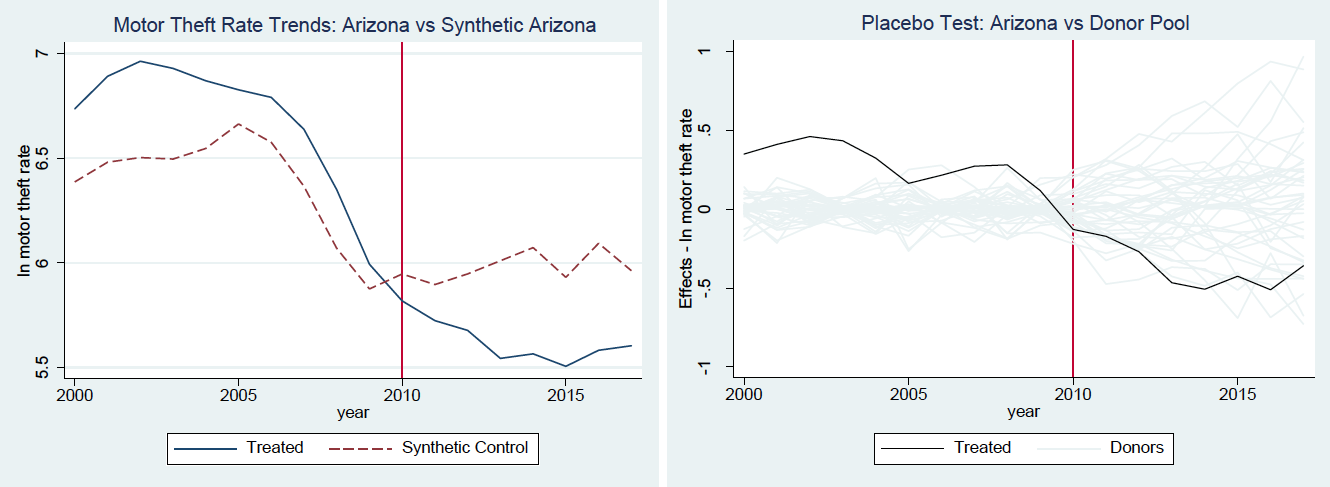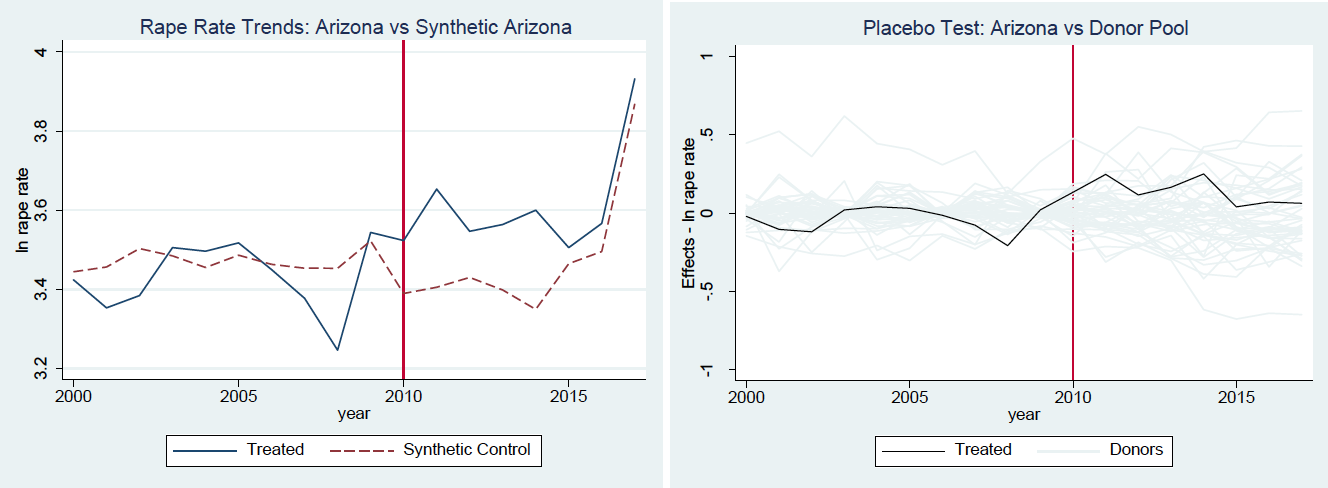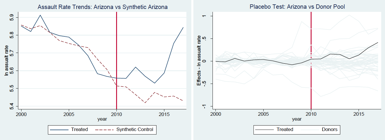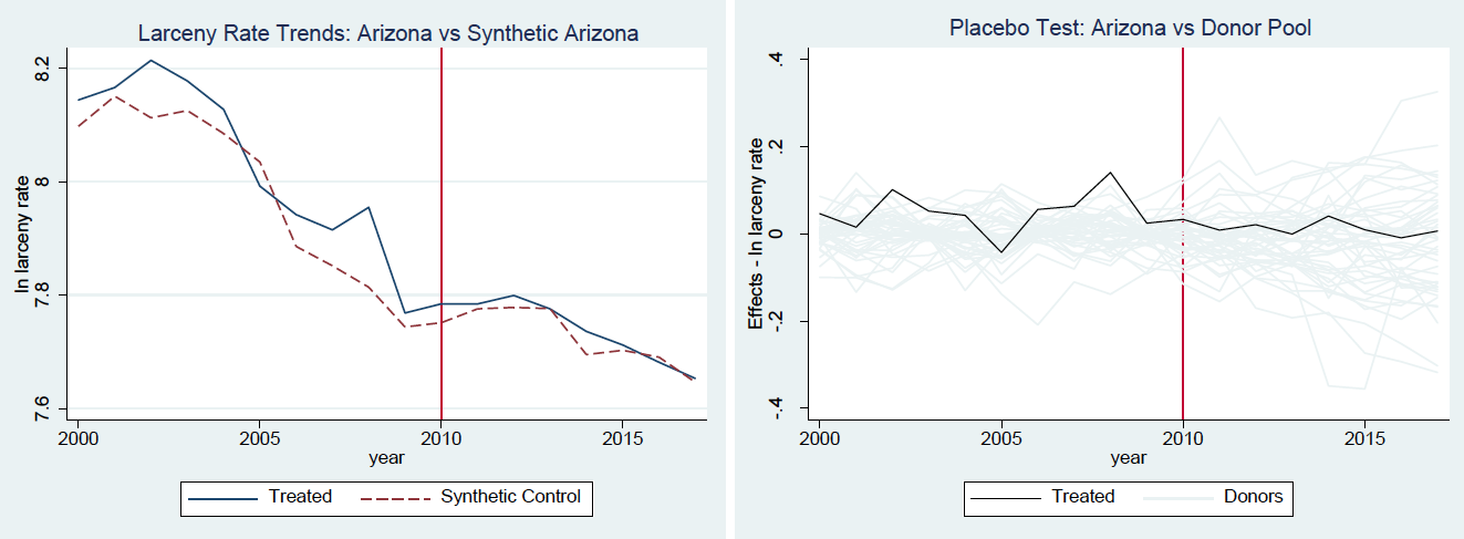 To ensure that the results were not driven by random chance, I report an estimate of the values for synthetic Arizona. I plot the