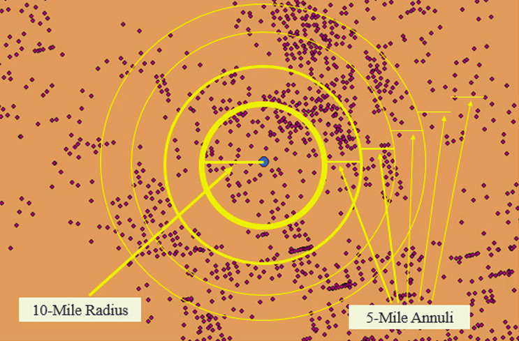 (i.e., a spatial ring beyond the initial 10-mile radius) around groundwater monitoring station