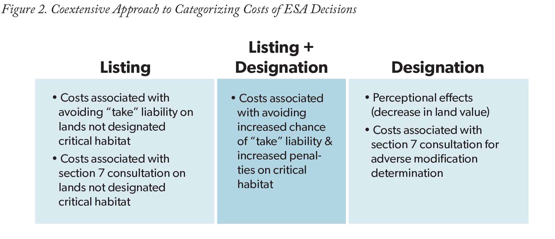 Measuring the coextensive costs of designating critical habitat, however, does make sense from an economic perspective because designating critical habitat can increase the marginal costs for landowners. Often, the costs of listing cannot be separated from the costs of designating critical habitat because designating critical habitat increases the likelihood and potential penalties for violating the ESA’s take provision.