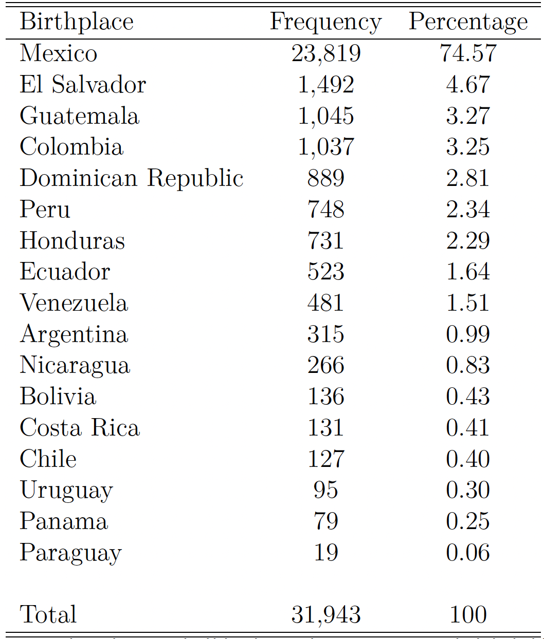 Table A.4: Likely undocumented Hispanic noncitizens: countries of origin