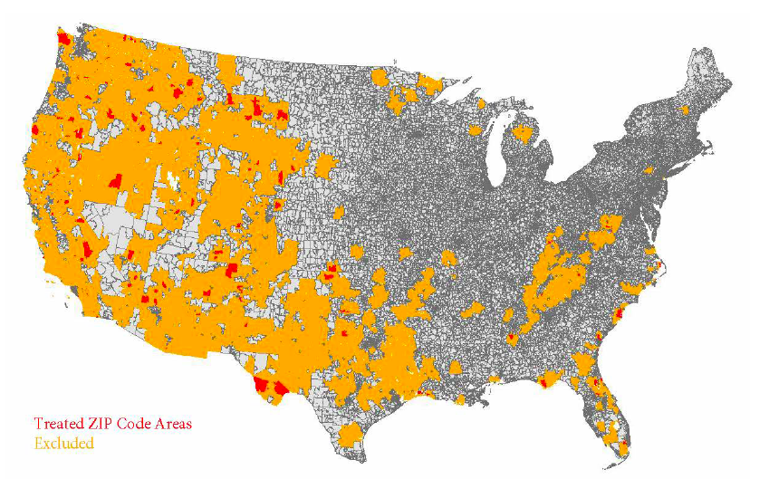 Figure 9. Treated and Comparison Group when Accounting for Spacial Spillover Effects