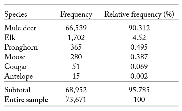Table A1. Top 5 Big Game Animals Involved in WVCs in Utah, 2010–2021